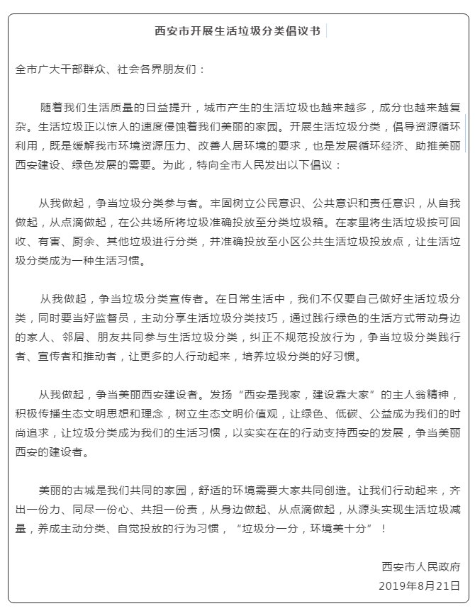 3)结尾:表明倡议者的决心、希望或者建议。在正文最后发出号召、呼吁,常用表述就是“让我们共同努力/为解决......问题而共同努力”。