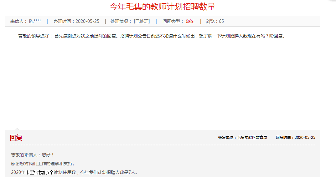 尊敬的来信人:您好!感谢您对我们工作的理解和支持。2020年市里给我们7个编制使用数,今年我们计划招聘人数是7人。