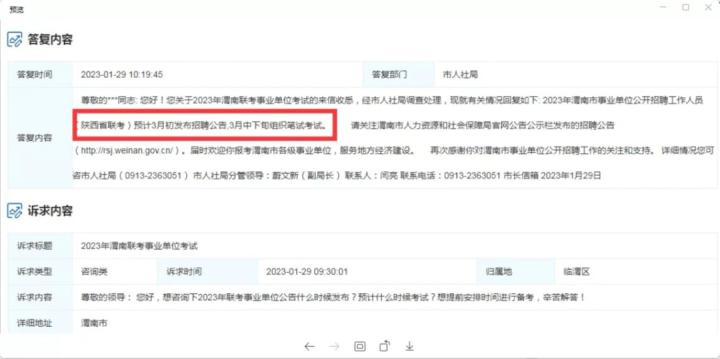 前几日陕西渭南人社局回复网友消息:(陕西省联考)预计3月初发布公告,3月中下旬组织笔试考试。