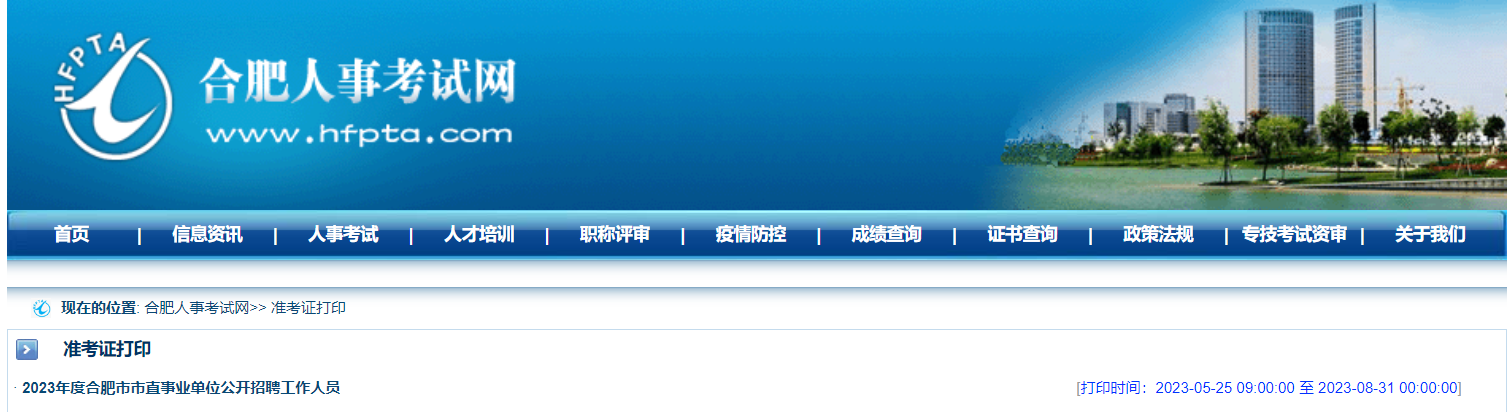 (四)完成网上缴费后,可于5月25至5月27日从合肥人事考试网自行下载并打印笔试准考证。