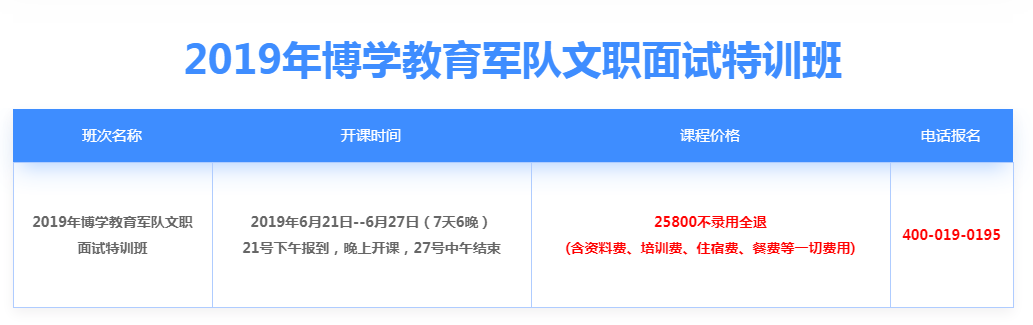 2019年博学教育军队文职面试特训班简章(点击查看详情)